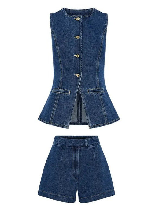 2 piece set denim shorts and sleeveless top