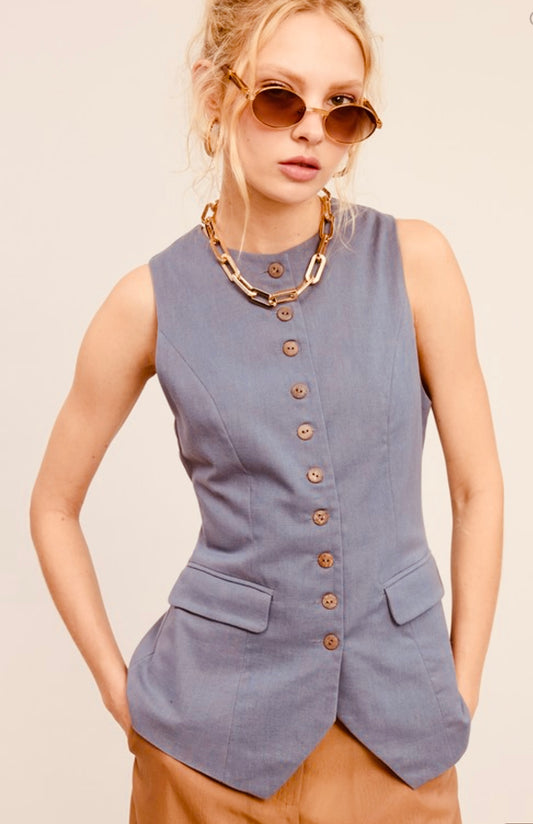 Adjustable Back Belt Long -Line Button Vest
