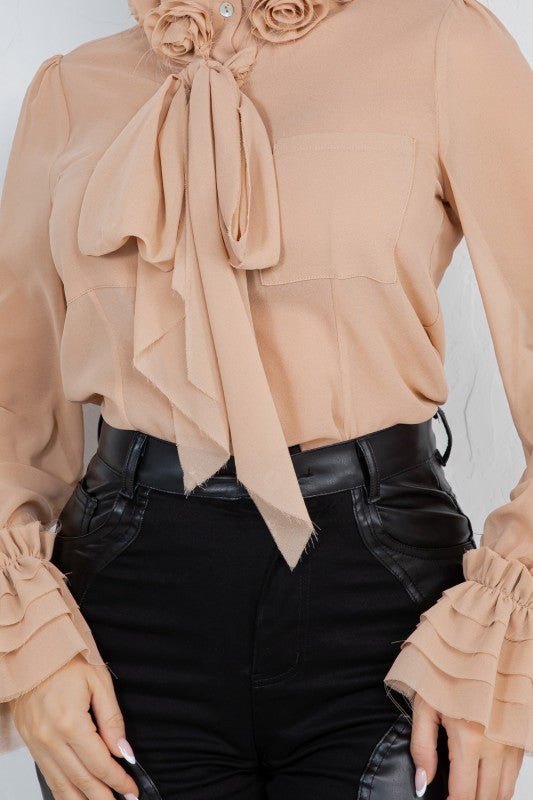 Ruffled Long-sleeve Boho Blouse With Tie Front