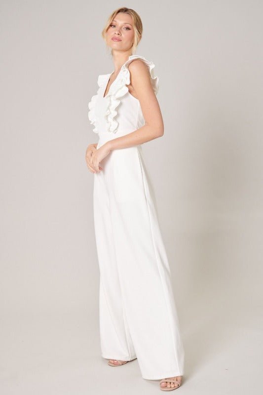 Sold outWhite Ruffle Wide Leg Jumpsuit