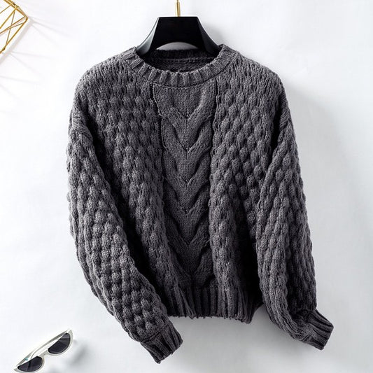 Solid Round Neck Knit Loose Long Sleeves Sweater