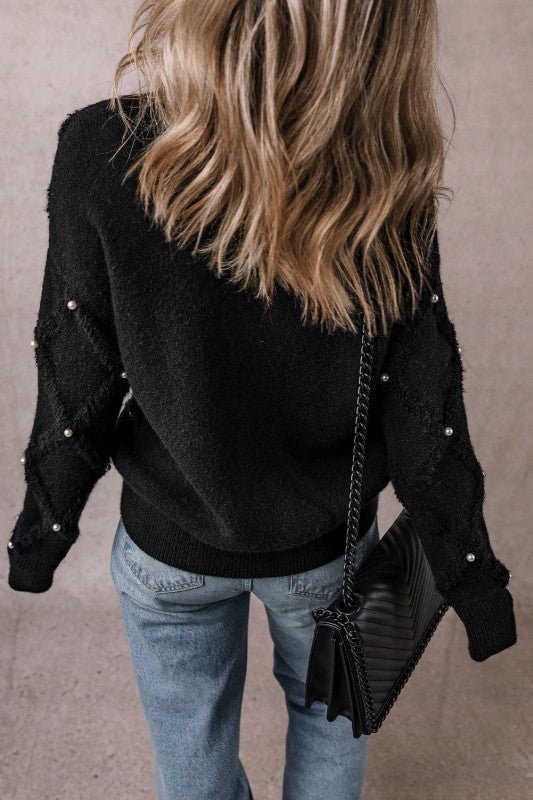 Valerie Pearl Embellished Rhombus Pattern Sweater
