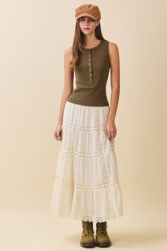 Lace Trim Maxi Skirt