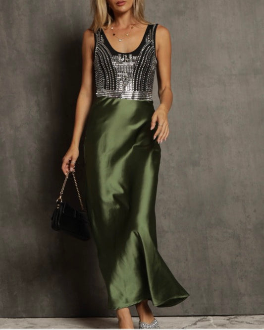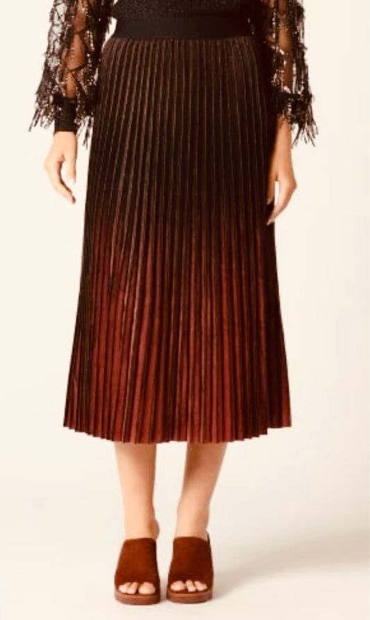 Wine Gradient Velvet Pleats Glittery Long Skirt