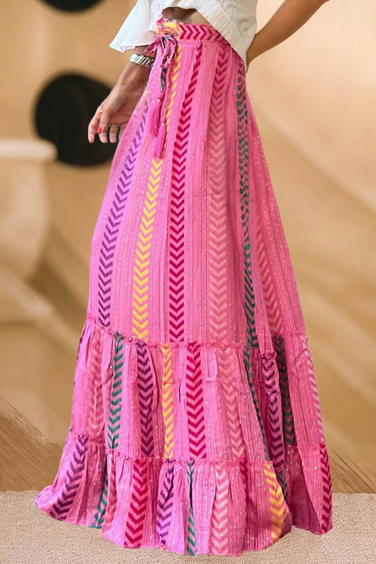 Women Boho Geometric Print Tiered Ruffled Long Skirt | S-XL
