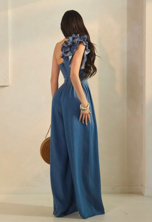 Plus Keyhole back Wide Leg Raw Edge Jumpsuit