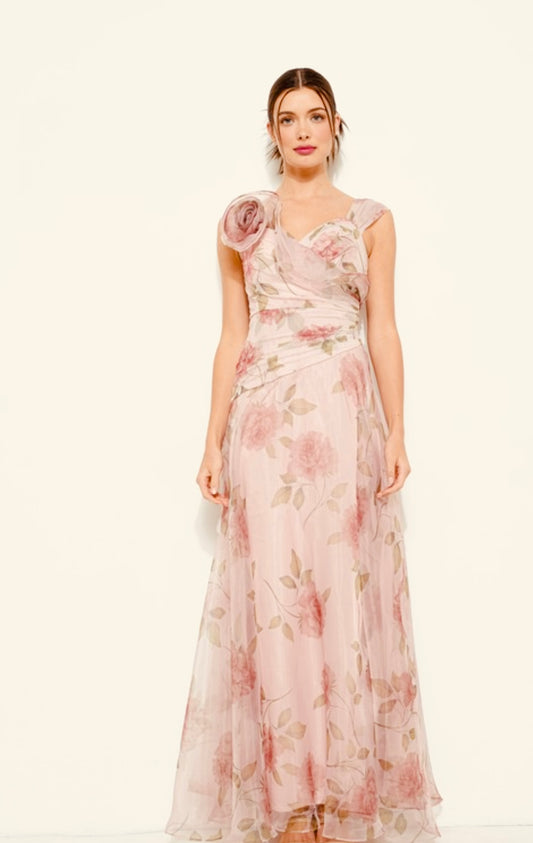 Floral Print Flower Corsage Detail Maxi Dress